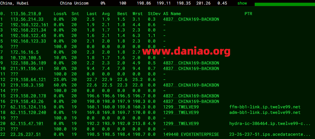联通回程:telia先到德国法兰克福或者英国伦敦之后接驳联通169骨干线路直连回国~
