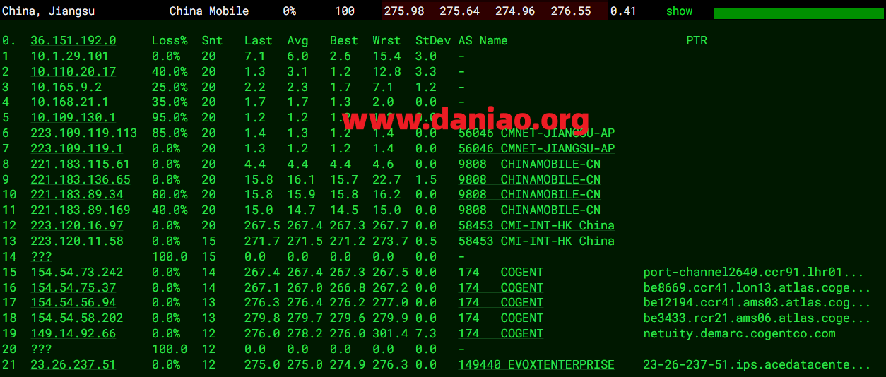 移动去程:移动cmi直连英国之后接驳cogent去往荷兰~