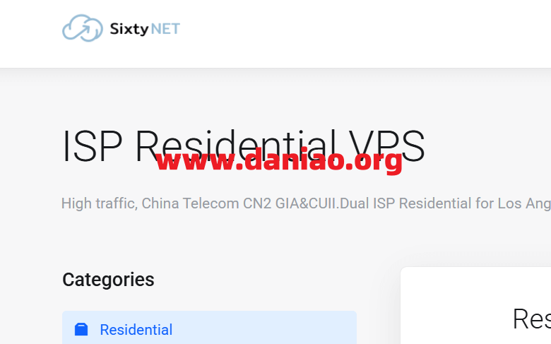 SixtyNet:美国洛杉矶住宅IP VPS,双ISP IP,$15/月起,CN2 GIA+CMI回程