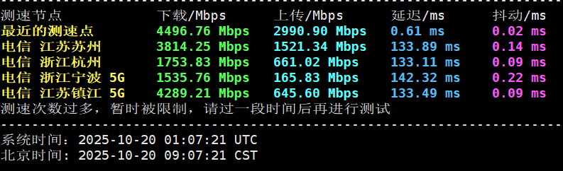 日本东京	         91.27Mbps	 192.17Mbps	 110.38ms
