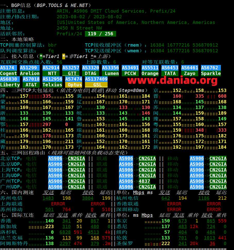 VPS性能不用担心了,都是顶级的硬件配置,这里只简单说下网络情况: