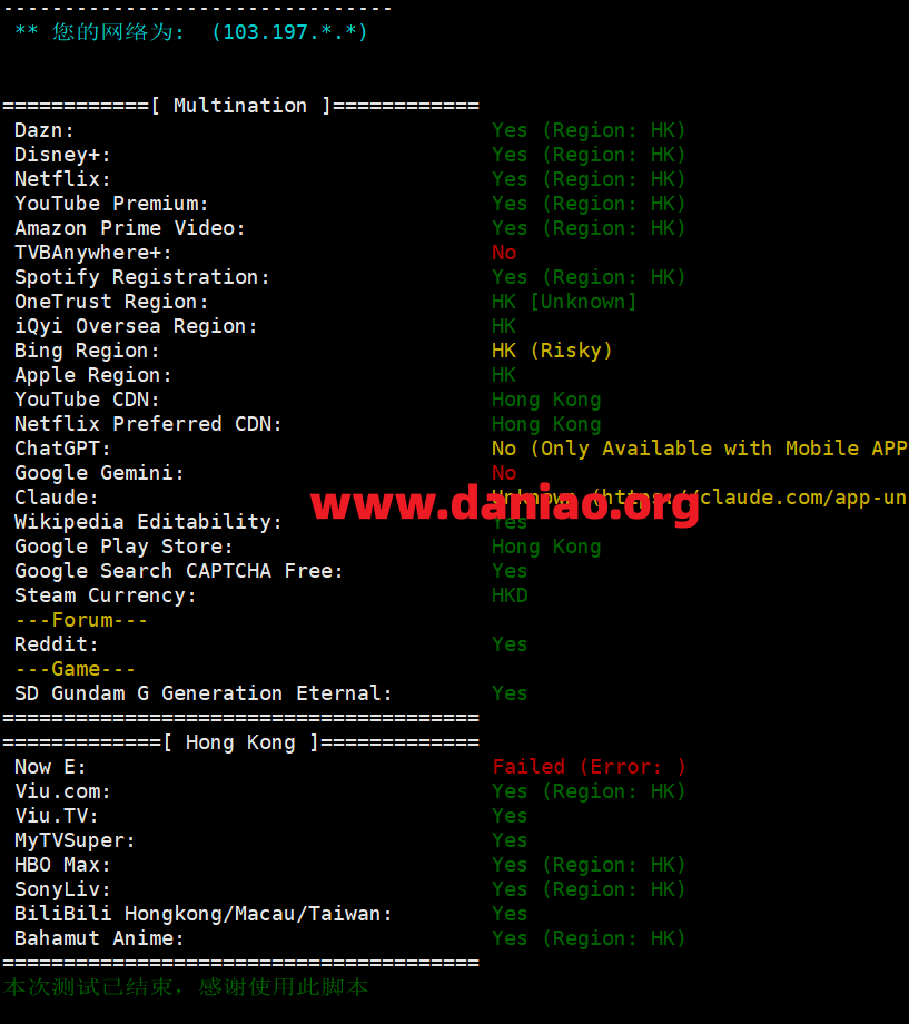 流媒体:香港原生IP,貌似能解的都解了,还是不错的