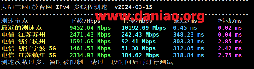 电信浙江	         5.47Mbps	 16.71Mbps	 339.80ms